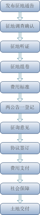 1、 发布征地通告。土地储备机构根据政府相关文件将拟征收的集体土地位置、面积等向被涉及的村级组织、属地政府及属地土地管理部门发送征地通知,并同时在被征地村级组织张贴征地公告。