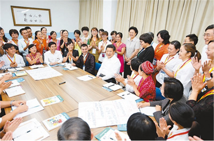 在他看来,“人生的扣子从一开始就要扣好”,“扣好”的一个关键是学校和老师。2014年9月,习近平同北京师范大学师生代表座谈时说道:“一个老师如果在是非、曲直、善恶、义利、得失等方面老出问题,怎么能担起立德树人的责任?”他要求,广大教师必须率先垂范、以身作则,引导和帮助青少年学生扣好人生的第一粒扣子。